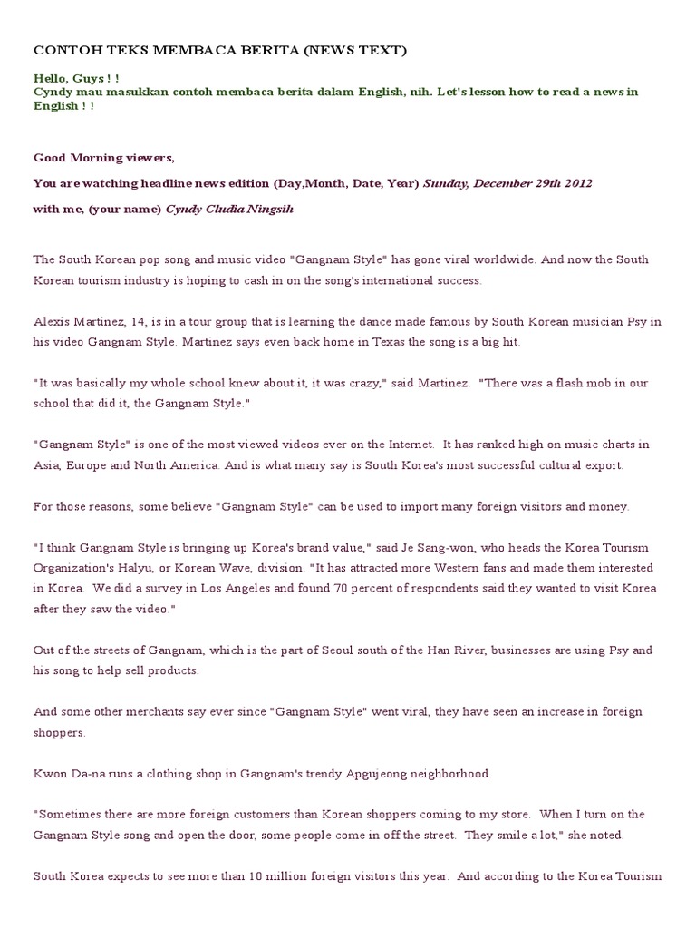 Contoh Teks Membaca Berita | South Korea | International ...